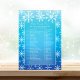 Azul, terra maravilhosa do inverno, chá de fraldas de floco de neve que é um jogo de chá de fraldas Baby Candy. Belo fundo azul gradiente com flocos de neve brancos e grandes. Modelos criaram por você atrás.