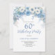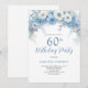 Convite de aniversário floral azul 60º. Fácil de mudar o texto. Floral Elegante de aquarela.