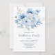 Convite de aniversário floral azul. Fácil de mudar o texto. Bonito floral de aquarela.