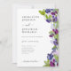 Linda e elegante mão pintada com cor d'água, flores de ervilha botânica de verão e folhagem em azul-claro, azul-marinho, azul-borrado, rosa, verde-sábio, verde-sábio, roxo e matizes lavandas. Modelo fácil de usar com o moderno e elegante roteiro de tipografia de cinzas de carvão. Perfeito para um único casamento botânico de verão ou flores de primavera. Arte original única da artista Catherine Sweetman