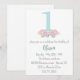 Convites Azul floral, rosa pastel festa de 1º aniversário