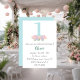 Convites Azul floral, rosa pastel Festa de 1º aniversário