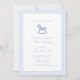 Convites Azul Gingham Rocking Horse Boy Birthday