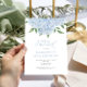 Esta bela design apresenta flores azuis de hydrangea e seu texto personalizado. Use o formulário modelo para adicionar suas informações.