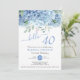Convites Azul Hydrangeas Watercolor aniversário de 40 anos