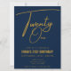 Marinha Azul e Ouro Vinte e um 21º Convite de Aniversário
