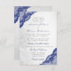 O design apresenta um motivo de renda prateada delicada em gradiente e renda no canto azul marinho. A escrita elegante em branco suave completa o visual. Este convite de casamento pode ser personalizado para qualquer evento especial, como casamento, chá de noiva, jantar, festa de noivado, festa de aniversário e muito mais. Precisa de ajuda com a redação do save the date ou personalização? Entre em contato comigo através do link "Pergunte ao Designer" nesta página