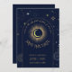 Mística celestial personalizada, exceto a data que apresenta o arco com o céu da meia-noite galáxia, poeira estrela, lua crescente e outros símbolos astrológicos em azul marinho e ouro e citação escrita "CAUSA NO CHEIO CÉU DAS ESTRELAS EU VI VOCÊ". Este cartão é facilmente editável. Se precisar de ajuda para a personalização desta placa ou se precisar de mais produtos correspondentes para esta coleção, envie-me gentilmente através do Zazzle.