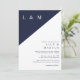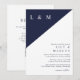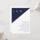 Este convite de casamento minimalista e elegante em azul marinho e branco pode ser personalizado com suas informações em tipografia moderna e o código QR do endereço do site do seu casamento no verso. Projetado por Thisisnotme©