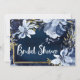 Convites Azul Marinho e Dourado Floral Aquarelado Moderno e