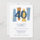 Faça uma declaração com este convite inspirado em vintage! Volte no tempo com este convite aniversário de 40 anos que homenageia a era atômica icônica. O design ousado 40 se destaca em relação ao fundo azul, bronzeado e amarelo, dando a ele um retrô e na moda. Este convite moderno do meio século é a forma perfeita de celebrar um aniversário de quarenta marcos num estilo inesquecível. Defina o tom para uma celebração memorável com esta design de um tipo.