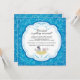 Parta seu evento fora do direito com nosso chá de panela na moda & moderno que caracteriza um par bonito de pássaros do amor vestidos no vestuário do casamento em um ninho ajustado em um fundo do damasco do azul de turquesa. Apenas personalize nosso convite com sua informação do casamento e você é todo ajusta-se para ir.