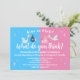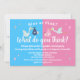 Azul ou rosa? O que você acha? Gênero único revela convite de festas com ilustrações bonitinhas de cegos dando um bebê para uma festa surpresa de bebês ou de revelação de gênero de meninas. Personalize-o com os nomes dos futuros pais, os detalhes da parte, as informações de RSVP e o nome do registro.
