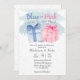Azul ou rosa O que você acha que o gênero revela convite com árvore de Natal verde e pacotes de pastel azul e rosa