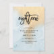 Este glam e na moda 18º convite de aniversário apresenta um fundo azul suave e um fundo de mármore dourado falso, com a tipografia de roteiros trendy em preto.