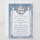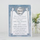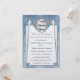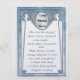 Com sua principal característica sendo uma foto dos noivos que você envia, este convite de casamento exclusivo de tamanho grande (6,25 x 8,25") apresenta a pintura digital original elegante e inspirada no Art Nouveau de Leslie Sigal Javorek que imita a aparência de um cloisonné azul pérola acentuado com aquamarinas facetadas prateadas e diamantes pavé. Impresso com tintas altamente saturadas em papel metálico (gelo) pesado, esta obra de arte é tão detalhada que você pensaria que as joias e o metal são reais!