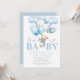 adorável ursinho de pelúcia, podemos esperar chá de fraldas convite com um tema de bebê azul. O texto e as cores podem ser personalizados.