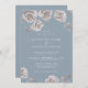 Este elegante convite para o casamento apresenta rosas de aquarela pintadas à mão em tons de rosa suave e poeirentos contra um fundo azul empoeirado, pareados com serifa clássica e tipografia de script. Romântico, porém moderno, este convite de casamento floral é perfeito para azuis empoeirados e azuis, rosa poeirentos, ou paletas mauve de cor de casamento. Projetado para coordenar com placas RSVP correspondentes, placas de detalhes, menus e favores para um pacote completo de artigos de papelaria.