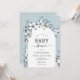 Aquarelas Flores de algodão e verduras de eucalipto. Convite de Chá de fraldas Azul Dusty. Celebrar com esta coleção fofa