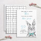 Seu filho está fazendo três anos! Convide seus convidados especiais com este adorável convite que apresenta coelho pintado manualmente com aquarela, em azul, preto e branco. O nome do bebê, "Turning Three" e a data estão em tipografia de script com letras azuis, e personalizados em um sans negro moderno, sans serif. A parte traseira da placa apresenta um design de verificação giro, preto e branco, desenhado à mão. Copyright Elegant Invites, todos os direitos reservados.