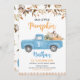 Celebre seu dia especial com este encantador Convite de Aniversário do Caminhão Azul Pumpkin. Com um caminhão azul vintage cheio de abóboras no centro, esse design é perfeito para uma festa de aniversário de outono com sabor rústico e sazonal. A parte superior é enfeitada com folhas coloridas do outono, enquanto a parte inferior apresenta um padrão de xadrez castanho aconchegante, adicionando calor e charme ao convite. Ideal para o aniversário de abóbora de um menino ou qualquer celebração do outono! BRT151