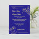 Convite de casamento simples único com flores de ouro românticas e elegantes em fundo azul real PARA MAIS PRODUTOS CORRESPONDENTES clique na coleção acima ou entre em contato comigo.