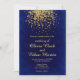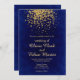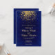 Este elegante convite de casamento moderno tem um efeito de confete de ouro num fundo azul real e rico em aquarela. Você pode alterar o estilo da fonte da maneira que quiser e clicar no botão "personalizá-la".