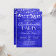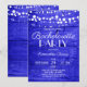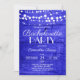 Faça uma declaração ousada com este impressionante convite de despedida de solteira rústico. Um vibrante fundo de madeira azul real brilha sob luzes delicadas de corda branca, criando uma atmosfera dramática e charmosa perfeita para uma celebração animada e memorável.