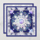 Floco de neve com o desenho de uma janela de vidro manchado de uma velha igreja europeia: uma janela rosa, com toques de uma grande variedade de cores, incluindo tons de azul, sobre um fundo azul marinho. Inlay de rochas azuis-claras (desenhada). Para um padrão de inverno antigo. Este motivo também está disponível em vermelho cardeal em minhas coleções de "rosa vermelho cardeal".