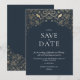 Um design romântico azul e Dourado, com um motif de jardim romântico secreto. Belamente padrões intrincados de flores e folhagem desenhados à mão entrelaçados em torno de um par de aves. Um fundo azul / marinho dramático cria um quadro para o texto simples. Veja uma variedade de itens correspondentes em várias cores. Esta design de estilo vintage é perfeita para um elegante casamento romântico.