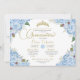 Convites Azul Rosa Floral Dourado Tiara Quinceanera