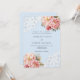 Para um casamento elegante e romântico. Um fundo de cor azul clara decorado com flores, rosas e rendas de ouro rosa e rosa. Personalize e adicione seus nomes e detalhes.