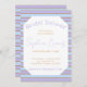 Este chá de panela moderno e divertido tem certeza de fazer uma declaração com sua design única. O plano de fundo apresenta faixas alternadas de azul claro e roxo, que são acentuadas por elegantes faixas de linha de brilho dourado para um toque de glamour. O nome da noiva, as palavras "Chá de panela" e as informações do registro são exibidos de forma destacada em uma bonito cor roxa para complementar as faixas de fundo, enquanto o resto do texto está em ouro para uma aparência coesa e polida. O uso de várias fontes e estilos dá a este convite uma sensação moderna e divertida que é perfeita para uma noiva que procura algo único e divertido. A combinação de azul, roxo e ouro torna este convite perfeito para uma noiva que ama essas cores e quer incorporá-las ao seu tema de chá de panela. Quer você esteja hospedando um brunch, um chá de tarde, ou uma festa à noite, este convite é certo para dar o tom para uma celebração memorável e festiva. No geral, este chá de panela é a escolha perfeita para uma noiva moderna que quer adicionar um toque de diversão e sofisticação ao seu dia especial. A paleta de cores única, o uso de brilho e a variedade de fontes e estilos fazem com que este convite se destaque da multidão e defina o palco para um chá de panela inesquecível.