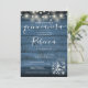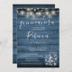 Um convite de 15 de Quinceañera, rústico, com luzes bonito de cordas e frascos-pedras com tipografia de na moda, sobre um fundo azul de madeira rústica. Projetado por Thisnotme©