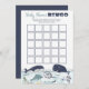 Sob o mar, o temido design de "Bingo Chá de fraldas" para emparelhar com a nossa coleção de mar "Ahoy, It's A Boy", que inclui belas criaturas marinhas, como baleias, um cavalo marinho, um golfinho, um polvo, uma arraia, estrelas-do-mar e coral. As cores principais são azul escuro e azul-céu médio com branco. Destacado com verde médio, cinza, sábio e ouro amarelo. Um olhar limpo para a sua ocasião de chá. Design composto por Designs de Corações de Dia de Inglês.