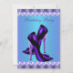 Modelo convite de aniversário calçado de alto salto do leopardo roxo Elegante. Esta bonito pérolas azul-lacre e lavanda roxa e convite de aniversário de alto salto roxo funciona bem para uma doce festa de aniversário de dezesseis roxas Quinceanera, as mulheres roxeiam qualquer convite de aniversário numérico e são facilmente personalizadas para o seu evento simplesmente escolhendo o botão "Personalizar!" para começar a adicionar detalhes do evento, estilo de fonte, tamanho de fonte e cor e texto. Observe que todos os designs de convite que você encontrará no Zazzle são gráficos impressos sem joias reais, arcos, levantados, gravados em relevo ou peças ou peças adicionadas.