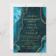 Convites Azul Teal e Festa de noivado mármore agata Dourada