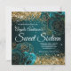 Um convite elegante para comemoração de 16 anos. Brilhante brilhante e rosa de chá aqua com brilho esbranquiçado contra uma bonito turquesa escura e imagem ombre azul-oceânica. Ouro brilhante floral glam 16ª festa de aniversário convida para sua filha. Todos os elementos brilhantes neste design de gradiente moderno são gráficos digitais que impressão com tintas como se fossem uma foto. São imagens bonitas de alta qualidade, mas não se usa brilho nos convites.