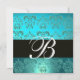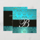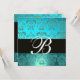 Convites AZUL TURQUESA PRETO DAMASCO MONOGRAM , água-marinh