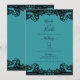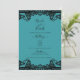 Convites Azul Turquesa Verde e Preto Renda Elegante Casamen