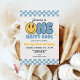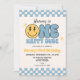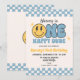 Blue ONE FELY DUDE Smile Retro Groovay Convite de Aniversário