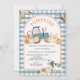 EDITABLE Green Blue Gingham Pumpkins Fazenda Animal Birthday Convite à apresentação de abóbora Pumpkin Fazenda Animal Birthday Convite de Aniversário, Folhas de abóbora e pilhas de convite para feno, convite ao trator de abóbora azul Pode ser usado para o aniversário de qualquer convite para a idade.