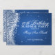Elegante 60º design de Convite de aniversário de Surpresa com sofisticado filme azul de onda de faíscas, nome personalizado e data e texto adicional. Imprima sua família e amigos com este design de anúncio de na moda e aniversário clássico. Totalmente personalizável! Fácil de usar e fácil de personalizar.