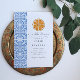 Convites Azulejo azul laranja aquarela Casamento Mediterrân