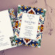 Azulejo azul do azulejo mediterrânico do ornamentado português do Mediterrâneo, tudo em um convite para casamento - descarregamento digital instantâneo de modelo editável com detalhes de casamento e qr RSVP no verso