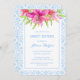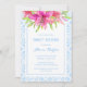 Este convite maravilhosamente desenhado apresenta uma ilustração impressionante da cor d'água de uma flor de lírio rosa e um quadro azul de azulejos cerâmicos azulejo. Você pode personalizar facilmente o texto e incluir a idade do celebrante para torná-lo ainda mais personalizado. Compartilhe a alegria com os seus amigos e família e faça deste aniversário milestone para se lembrar!