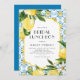 Convide os convidados para uma celebração vibrante com este convite de almoço de noiva personalizável, com um lindo padrão de azulejo marroquino a aquarelas em amarelo, azul e branco, acentuado com limões a aquarela frescos. Perfeito para um almoço de noiva inspirado no Mediterrâneo, esta design adiciona um toque divertido, mas elegante, ao seu dia especial. Personalize este convite para o almoço da noiva de limão com os detalhes do seu evento para um convite único!