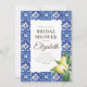 Composto por tipografia serif e escrita cursiva. Tudo contra um pano de fundo de aquarela de azulejos espanhóis mediterrânicos azuis e brancos com folhas de folhagem verde, limões e botânicos florais selvagens. Este foi projetado pelo White Paper Birch Co., exclusivo para Zazzle. Disponível aqui: http://www.zazzle.com/store/whitepaperbirch