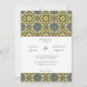 Azulejos verdes amarelos do Mediterrâneo todos em um convite para o casamento escrito à mão, editável, com a letra do modelo, padrão de ornamento do azulejo do livro convites para o casamento com detalhes do casamento e qr rsvp no fundo, se qr não for necessário - basta apagar o endereço do url no menu suspenso