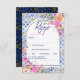 Esta placa RSVP apresenta uma encantadora mistura de padrões azulejos de cerâmica azul inspirados no Mediterrâneo e flores rosa vibrantes pintadas à mão, dando-lhe um equilíbrio perfeito de elegância clássica e talento moderno. O design arquitetado espelha o convite do casamento principal, criando um olhar coeso em sua suíte de papelaria. Com espaço para indicar as preferências alimentares e os requisitos dietéticos, este cartão garante que as necessidades dos seus convidados sejam atendidas ao mesmo tempo que adiciona um toque de na moda ao seu planejamento de casamento. O design bem pensado e os florais lindos fazem com que esta placa RSVP seja uma maneira deliciosa de seus convidados responderem.
